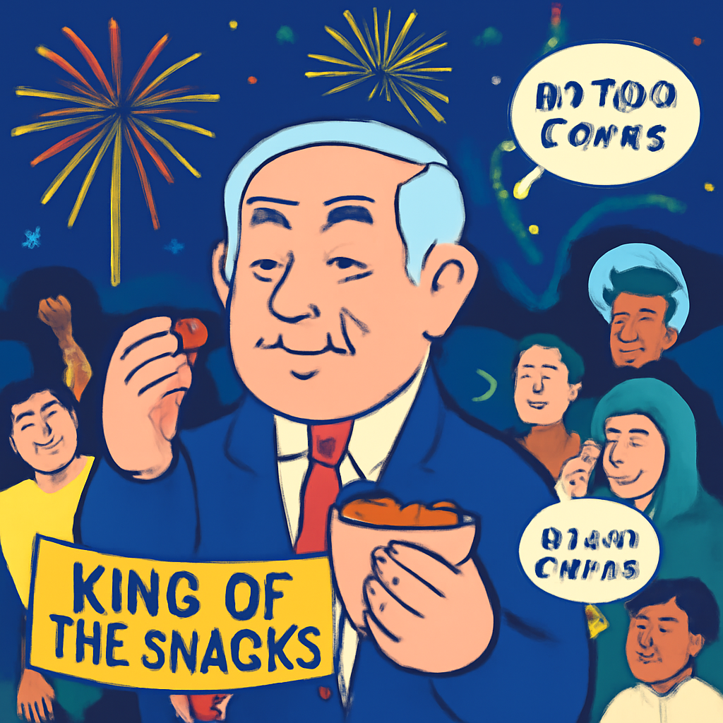 Once upon a time, there was a leader named Bibi who liked falafel and fireworks. People cheered, “Bibi! King of the Snacks!” when they saw him. Bibi thought if he made big booms, everyone would love him again. But not everyone liked the big booms. Some said, “No more booms! We want our friends back!” Bibi tried really hard to make everyone happy, but he needed to find a way to stop the booms and bring smiles back to his land. And that’s the moral to the story. ๐ค๐๏ธ