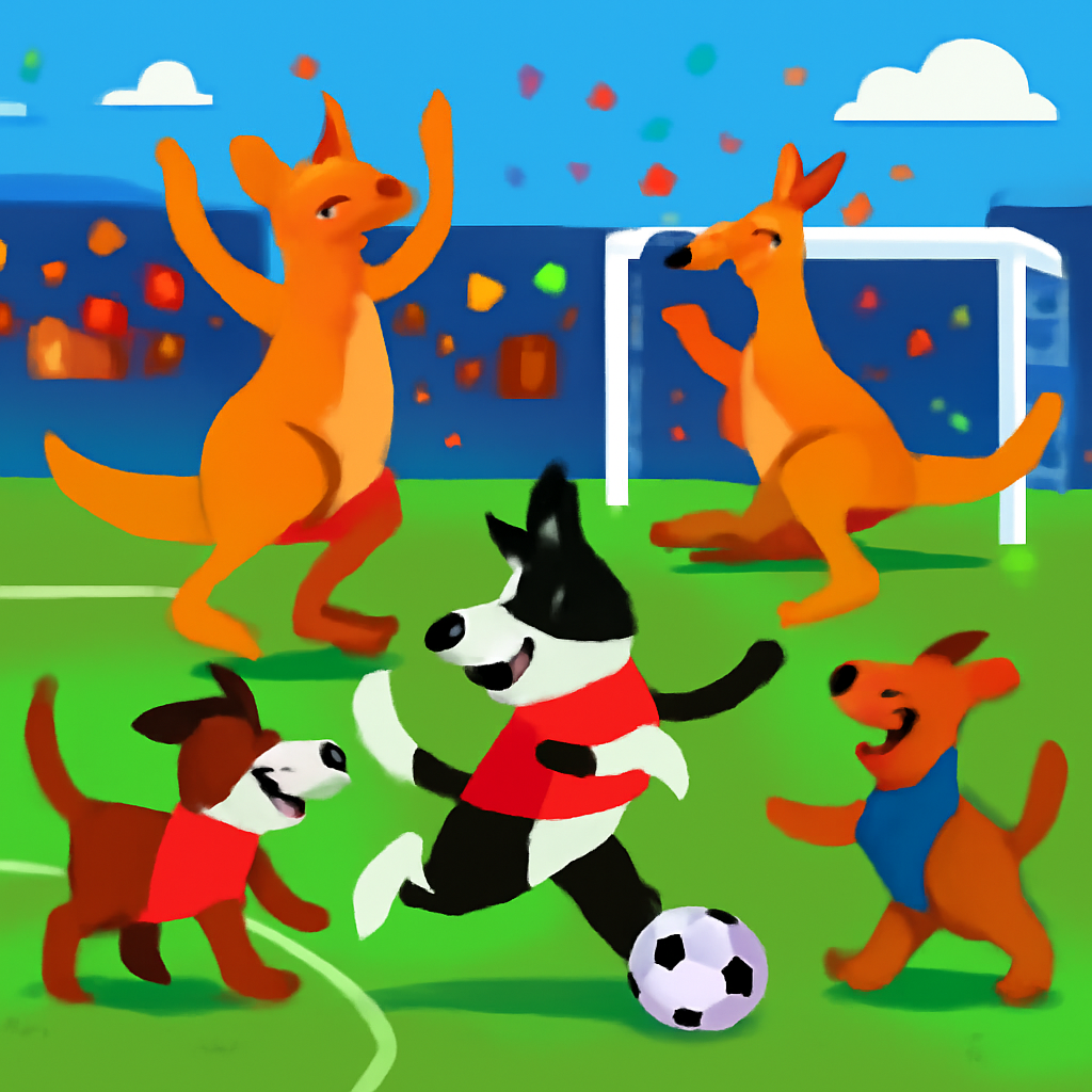 Once upon a time, the Doggies played the Kangaroos on a special day. The Kangaroos were super excited because it was a big celebration. But the Doggies were ready to run fast and kick lots of goals! 🐶 The crowd cheered, and the Doggies scored again and again. The Kangaroos tried their best and showed lots of spirit. But in the end, the Doggies won with a big score and everyone was happy. And that’s the moral to the story. 🏆