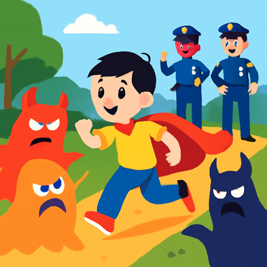 Once upon a time, Josh was walking in the park when some meanies with metal sticks came out. They were not nice and said bad words. Josh was very scared and tried to run fast like a superhero but got caught. The police are looking for the bad guys and helping Josh feel better. Josh learned to be careful, and he knows it’s important to tell someone when meanies are around. And that’s the moral to the story. 🦸♂️🌳👮♂️